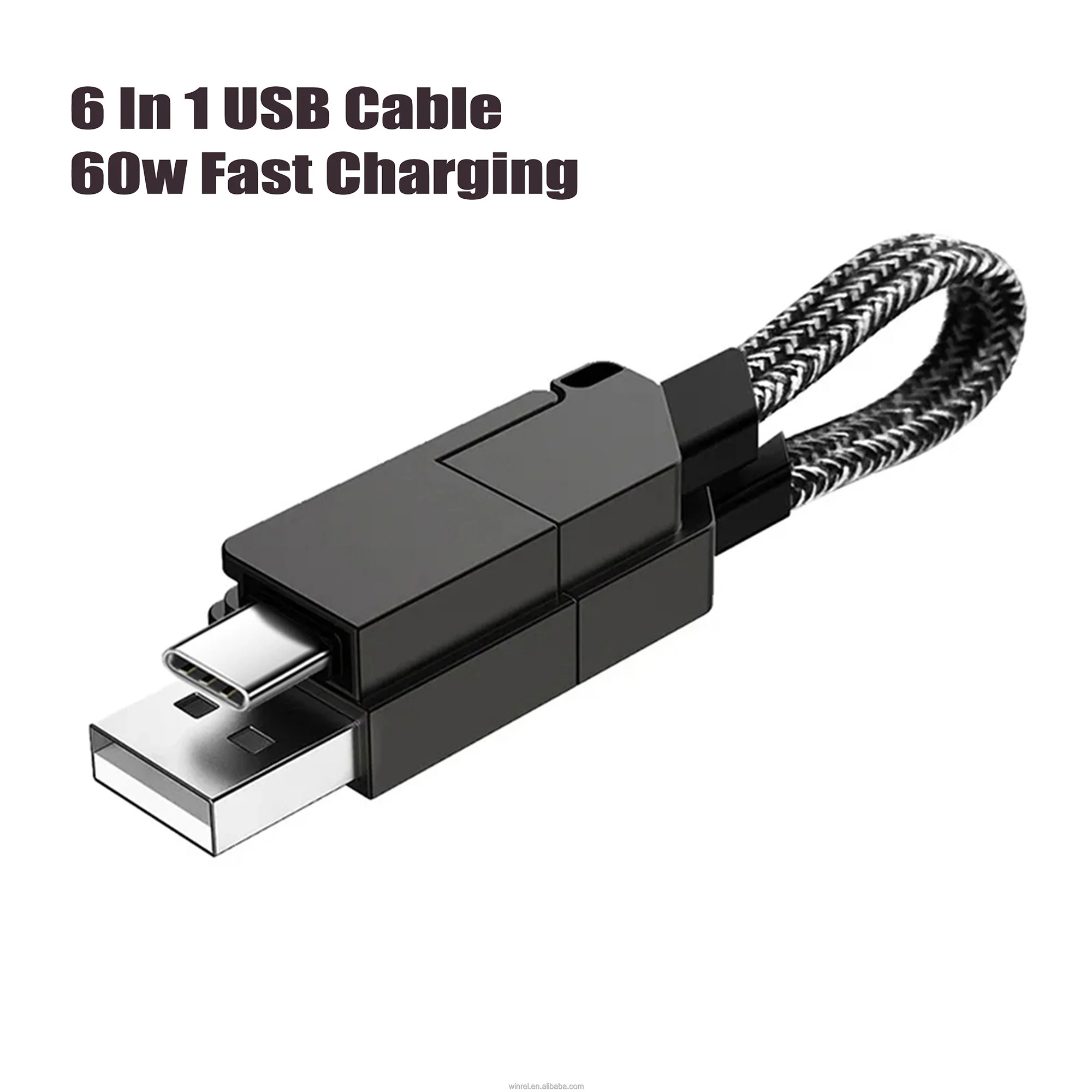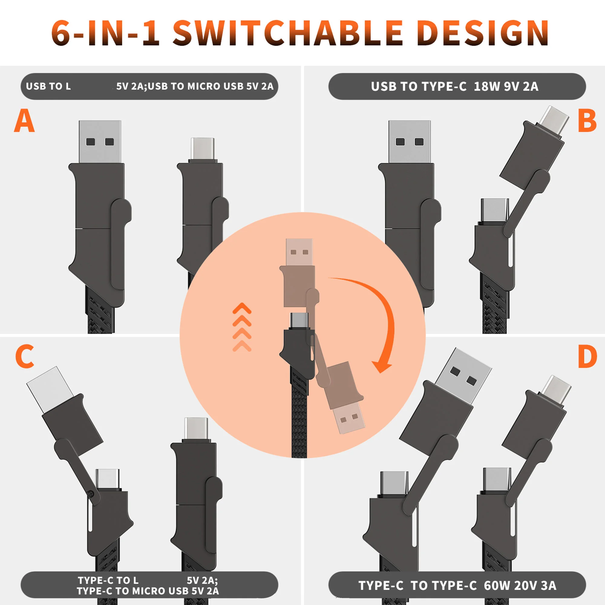 كابل شاحن متعدد الاستخدامات 6 في 1 يشحن كل أجهزتك بسهولة، عملي للسفر والمكتب والاستخدام اليومي، تصميم خفيف وعملي.