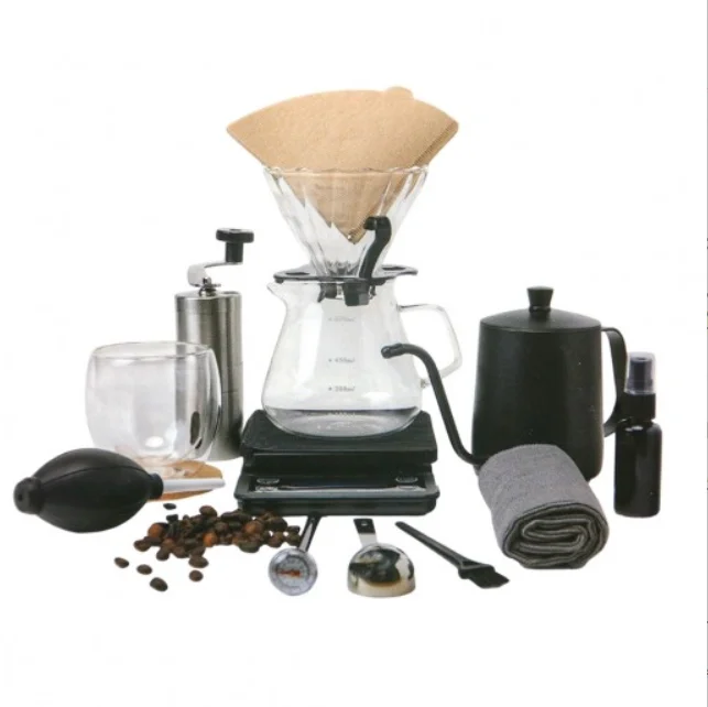 ميزان بمؤقت + مقياس حرارة خارجي علشان كل كوب يطلع بنفس الجودة.