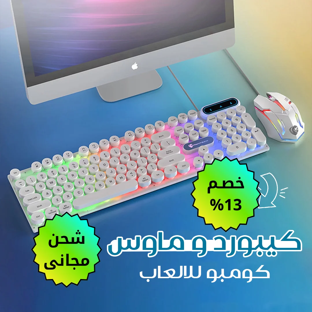 كومبو كيبورد وماوس للألعاب، استجابة سريعة وتصميم مريح، مناسب للجيمينج والاستخدام اليومي بجودة عالية وتحكم دقيق.